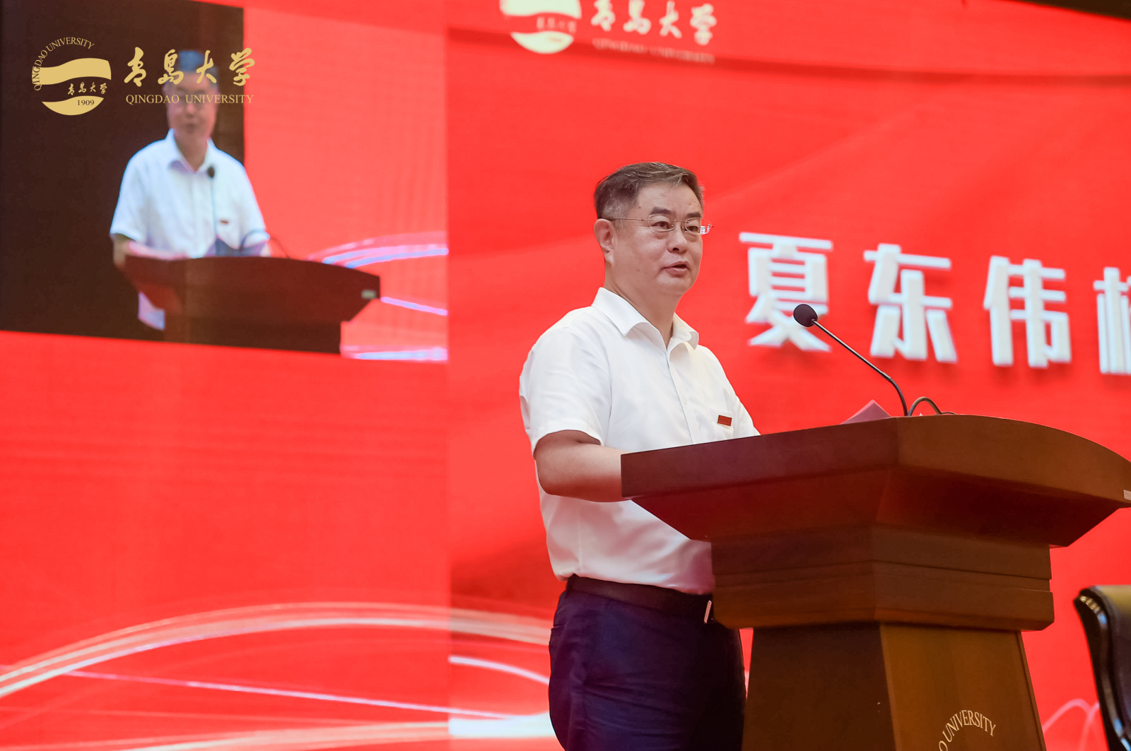典禮上,夏東偉對各位研究生同學來到青島大學繼續深造,表示熱烈的歡迎和衷心的祝賀。他介紹了青島大學的師資隊伍和高層次人才現狀,以及學校高水平學科建設和學校事業發展情況;分享了習近平總書記在中國共產黨成立100周年大會上的講話精神;特別表揚了在抗擊新冠肺炎疫情作出突出貢獻以及在本科階段就取得優秀創新成果的研究生新同學。他指出,研究生是國民教育序列的最高層次,今天的研究生代表著國家明天的核心競爭力。
