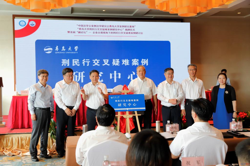 新聞網訊 9月18日,中國法學會案例法學研究會首個專業性案例研究基地落戶青島大學,基地揭牌儀式暨首屆“融論壇”——企業合規視角下的刑民行交叉疑難案例研討會在青島海景花園酒店會議中心舉行。青島大學校長夏東偉出席并致辭。中國法學會案例法學研究會會長胡云騰,最高人民法院行政審判庭原庭長、國家法官學院原院長黃永維,中國法學會案例法學研究會秘書長梁欣,青島市中級人民法院黨組書記、院長、一級高級法官李方民,青島市人民檢察院黨組成員、檢委會專職委員、二級高級檢察官孫友昌,青島市司法局黨組書記、局長萬振東受邀參加揭牌儀式并致辭。儀式由青島大學黨委常委、副校長孔偉金主持。