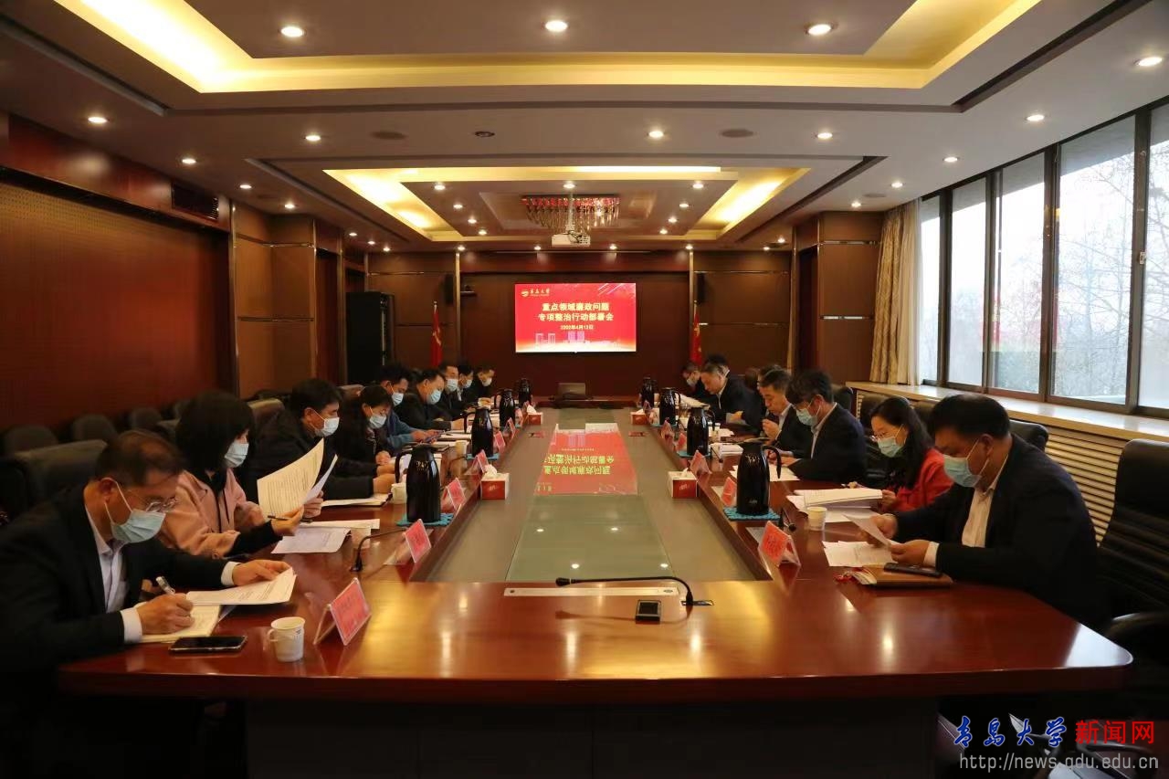 新聞網訊 4月12日上午,校黨委書記胡金焱在行政樓第五會議室召集重點領域廉政問題專項整治行動專題會。校黨委副書記杜方波,校黨委常委、紀委書記、省監委駐青島大學監察專員范玉斌出席會議。