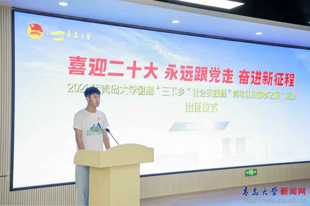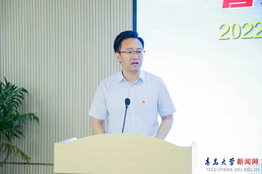 儀式上,解文斌全面介紹了2022年青島大學(xué)暑期“三下鄉(xiāng)”社會實(shí)踐暨“青年紅色筑夢之旅”活動的總體思路、實(shí)踐內(nèi)容和組織安排等相關(guān)情況。