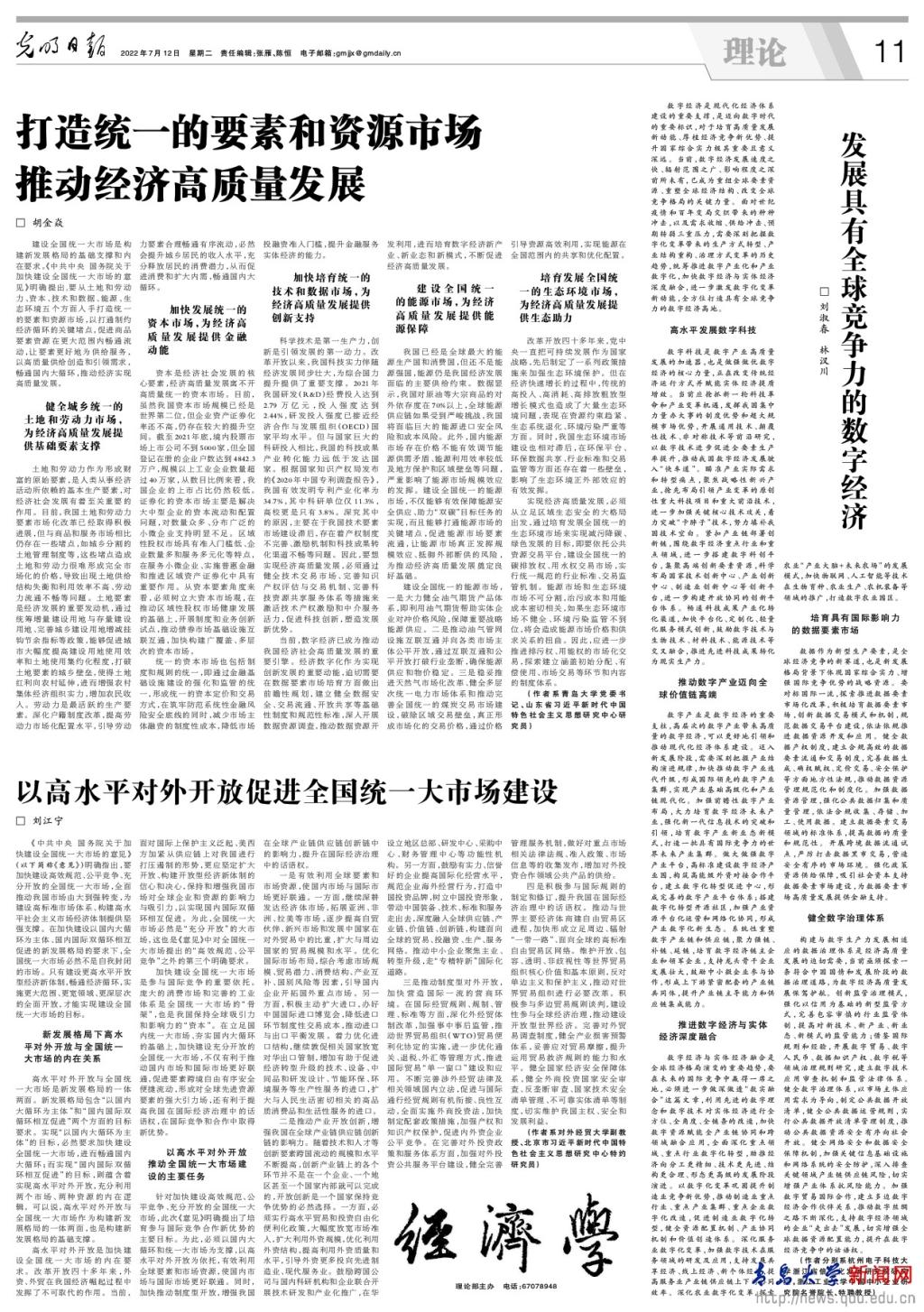 新聞網訊 7月12日,我校黨委書記胡金焱在《光明日報》發表題為“打造統一的要素和資源市場 推動經濟高質量發展”的理論文章。
