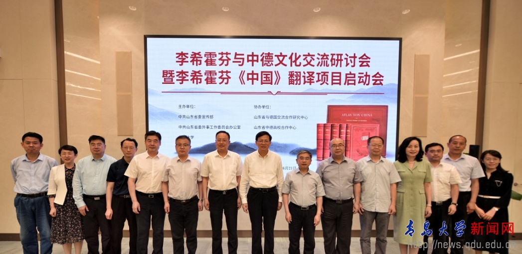 新聞網訊 為進一步推動我省與德國的交往合作,近日,由省委宣傳部、省委外辦、青島大學共同主辦的“李希霍芬與中德文化交流研討會暨李希霍芬《中國》翻譯項目啟動會”以線上線下相結合的方式順利召開。校黨委書記胡金焱帶隊參會。
