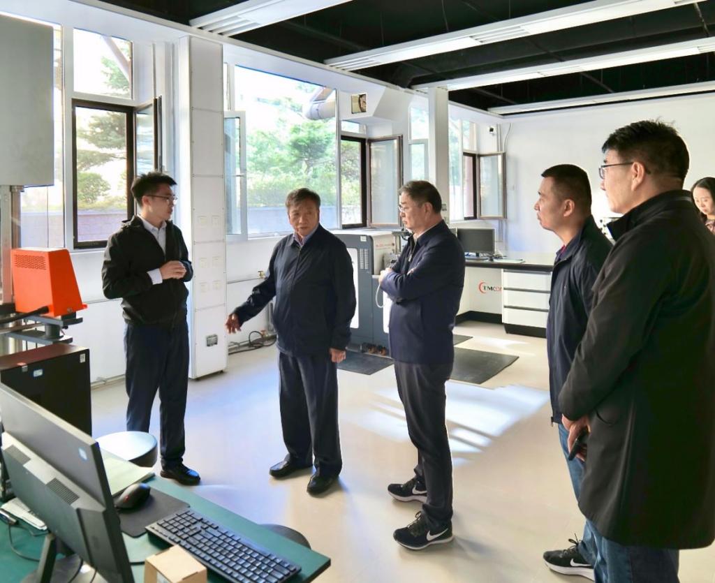 在浮山校區東院教學實驗樓,劉嘉麒就大樓的建設情況、功能布局與“紡織+”學科集群建設和發展相結合等問題與相關學科負責人進行了現場交流。在功能纖維與先進材料研究院,徐英俊教授詳細介紹了各實驗室功能及實驗設備性能,并分析了實驗室與玄武巖纖維應用研究融合發展的初步方案。在生態紡織協同創新中心,劉嘉麒一行現場考察了專業應用實驗室,房寬峻教授展示了具有生物醫用、低電阻可穿戴等不同功能的先進紡織品。在分析測試中心,王宗花教授介紹了中心的成立背景、建設布局、主要功能及大型儀器設備的應用情況。