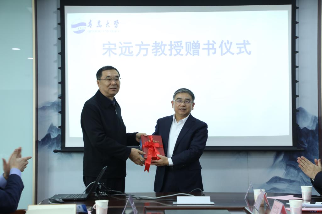 宋遠(yuǎn)方將近年來(lái)著作贈(zèng)予學(xué)校并與與會(huì)同志交流。他指出,青島大學(xué)是一所百年老校,不僅有悠久的歷史,如今也煥發(fā)了新的青春活力,薪火相傳,砥礪奮進(jìn),為國(guó)家和社會(huì)培養(yǎng)了大量人才,為國(guó)家和區(qū)域經(jīng)濟(jì)社會(huì)發(fā)展作出了重要貢獻(xiàn)。黨的十九屆五中全會(huì)提出,堅(jiān)持創(chuàng)新在我國(guó)現(xiàn)代化建設(shè)全局中的核心地位,把科技自立自強(qiáng)作為國(guó)家發(fā)展的戰(zhàn)略支撐。作為青島大學(xué)的一份子,在落實(shí)立德樹(shù)人根本任務(wù),為學(xué)校發(fā)展、人才培養(yǎng)貢獻(xiàn)力量。