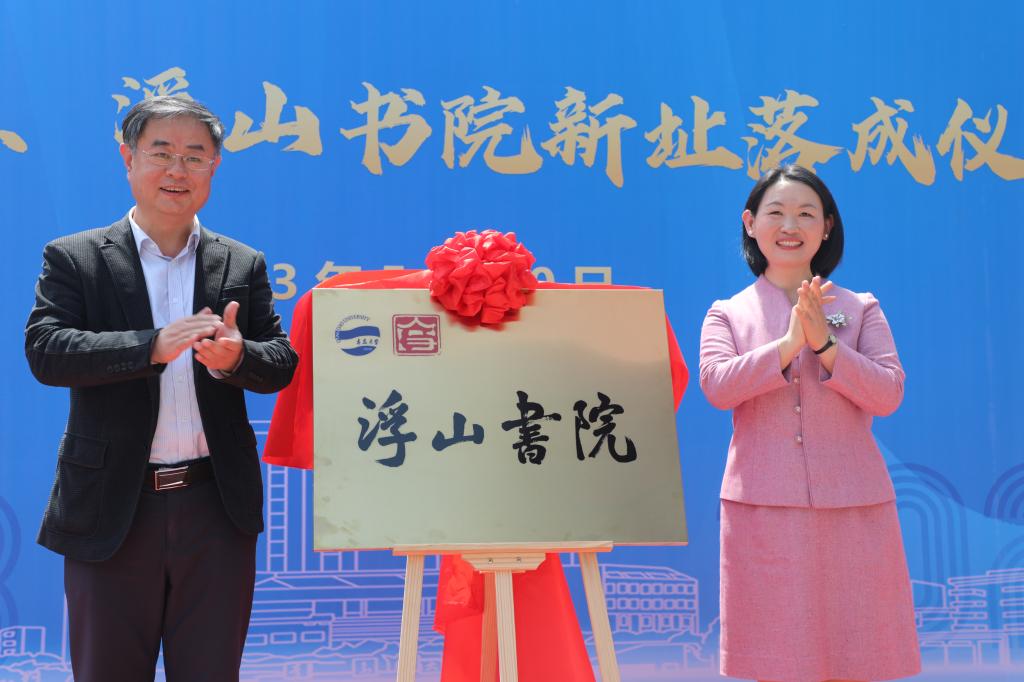 儀式上,夏東偉與姜文博一起為慧創(chuàng)空間的新址落成揭牌,與國家大學(xué)生文化素質(zhì)教育基地指導(dǎo)教師盧文麗一起為浮山書院的新址落成揭牌。