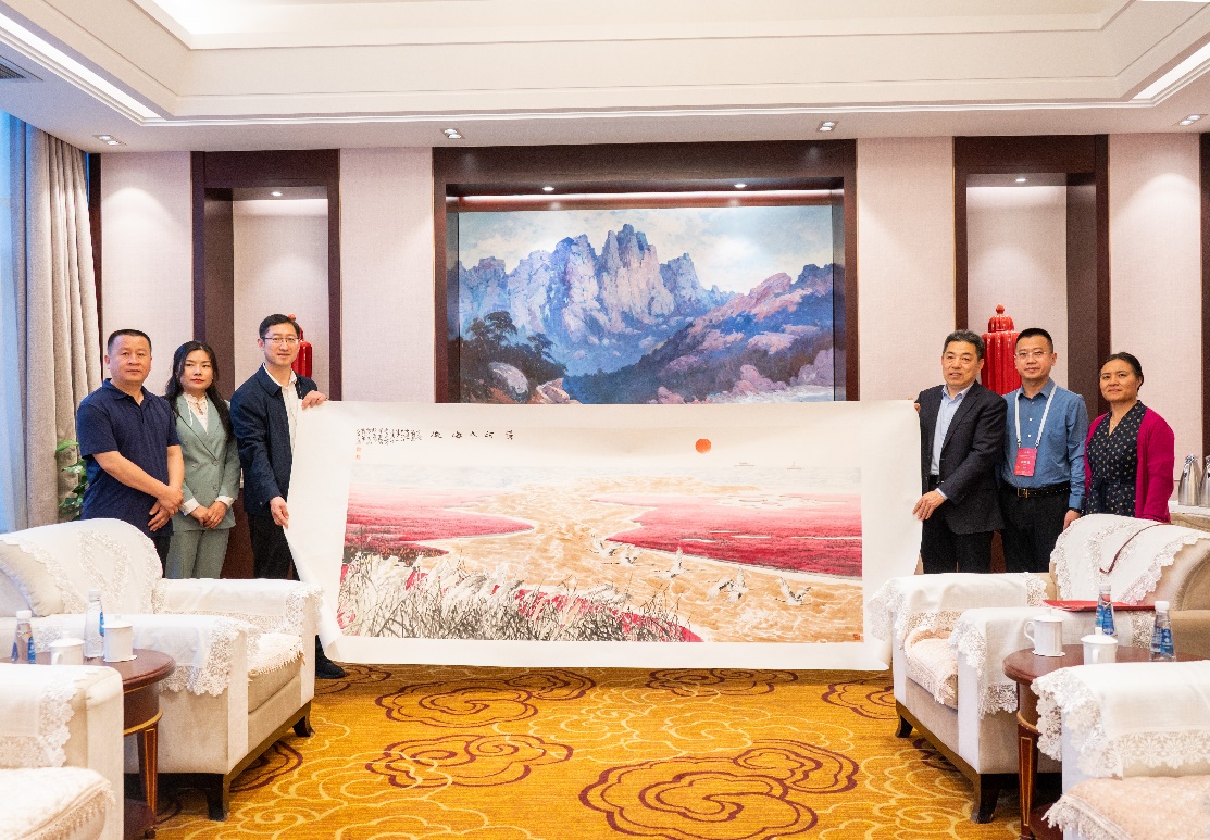 儀式前,胡金焱會見了東營校友會一行。杜方波代表學(xué)校感謝東營校友會一直以來對母校的關(guān)心支持,對本次捐贈表示衷心感謝。杜方波說,在學(xué)校合并辦學(xué)30周年之際,東營校友會積極策劃捐贈母校書畫作品《黃河入海流》,彰顯了東營校友會及其校友們對母校的濃情厚誼。近年來,東營校友會積極為校友服務(wù)的同時,助力母校各項事業(yè)發(fā)展,在人才培養(yǎng)、校企合作、校際合作、共建產(chǎn)業(yè)孵化基地等方面取得豐碩成果。杜方波表示,母校始終掛念校友的成長和進步,希望可以通過更多這樣的活動,凝心聚力,獻計獻策,更好地暢通學(xué)校和校友的聯(lián)系渠道,凝聚各方優(yōu)勢資源,服務(wù)廣大校友、服務(wù)社會、促進母校和校友事業(yè)共同發(fā)展,相互成就,助推教育事業(yè)發(fā)展。