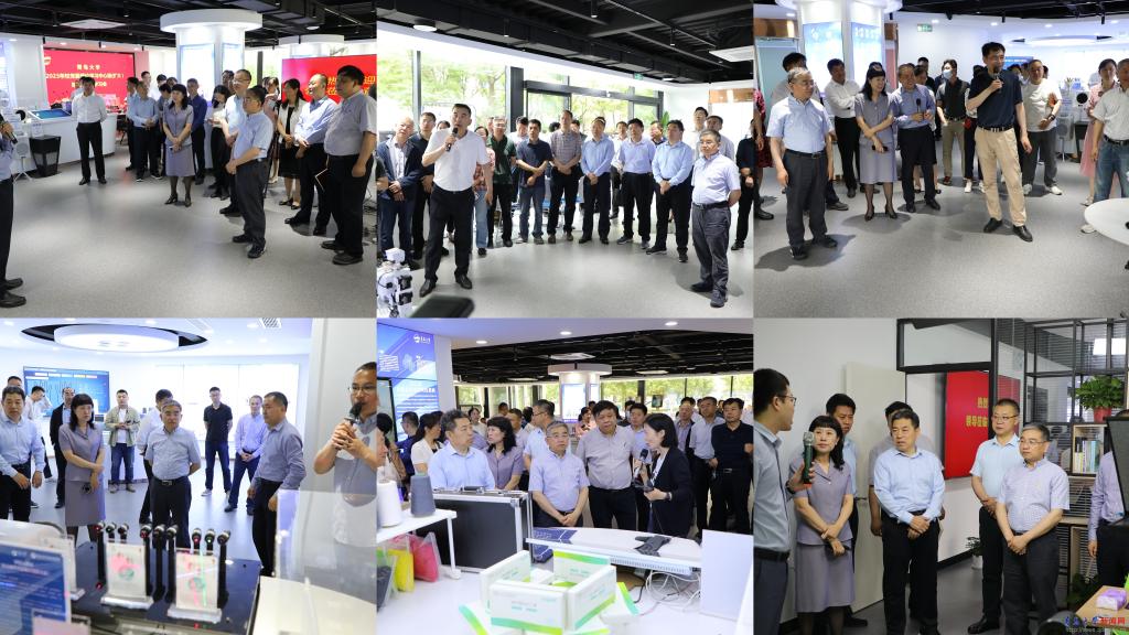 本次學習創新了學習形式,結合正在開展的學習貫徹習近平新時代中國特色社會主義思想主題教育,參學人員在產業技術研究院現場參觀調研、沉浸式體驗、學習交流。與會人員參觀了概念驗證中心、沉浸式體驗中心、項目成果展示區、開放式路演廳、洽談交流區、直播互動功能區等區域,與腫瘤精準醫學、可穿戴設備、人工智能、生命健康、海藻醫用制品等項目成果展示的專家團隊進行了現場交流。