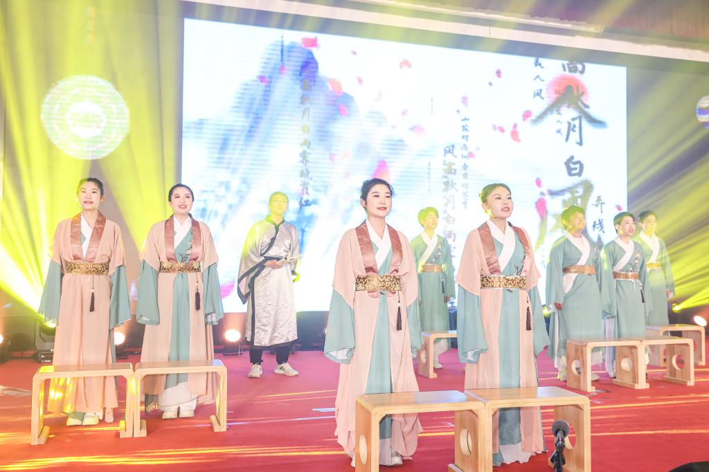 “中國詩樂舞傳承”是浮山書院近年來開設的一門融傳統文化與美育的通識課程,由音樂學院教師劉宇博、王銳主講,將中國古典詩詞吟誦、演唱與樂舞相融合,輔之以中國民族器樂演奏,采取體驗式教學方式,帶領學生進行作品創編和表演,以涵養性情,向善成德。本次課程展演作品有雅樂《鹿鳴》、《蒙學黃鐘宮調歌》,吟誦《聲律啟蒙》、《桃夭》、《無衣》,古曲《杏花天影》、《清明》、《春光好》,樂舞《關雎》,聊齋俚曲《金紐絲》、《伢伢油》,以及古琴演奏《酒狂》、古箏演奏《蕉窗夜雨》,為現場觀眾呈現了一臺富有中國傳統文化意蘊的視聽盛宴。
