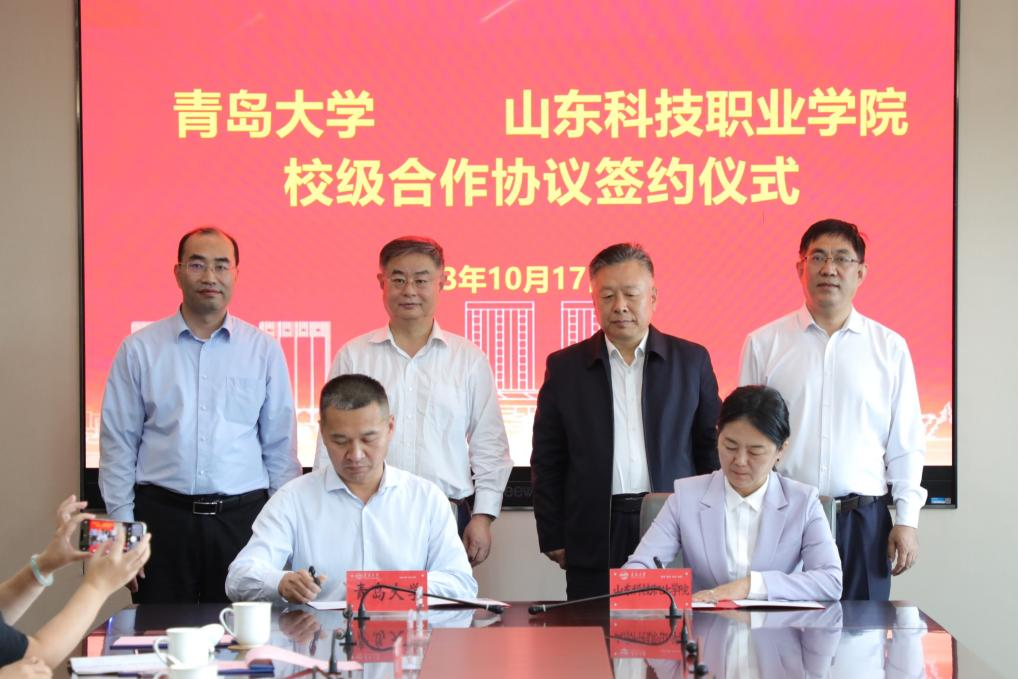 座談會上,雙方簽署了《青島大學與山東科技職業(yè)學院校際合作協(xié)議》等三項協(xié)議,并就人才工作機制、專業(yè)建設、學生實習實訓、繼續(xù)教育等方面工作進行了深入交流。