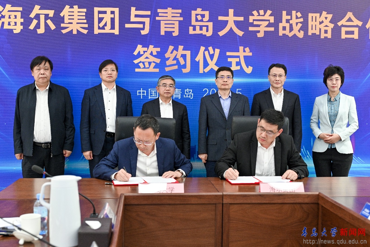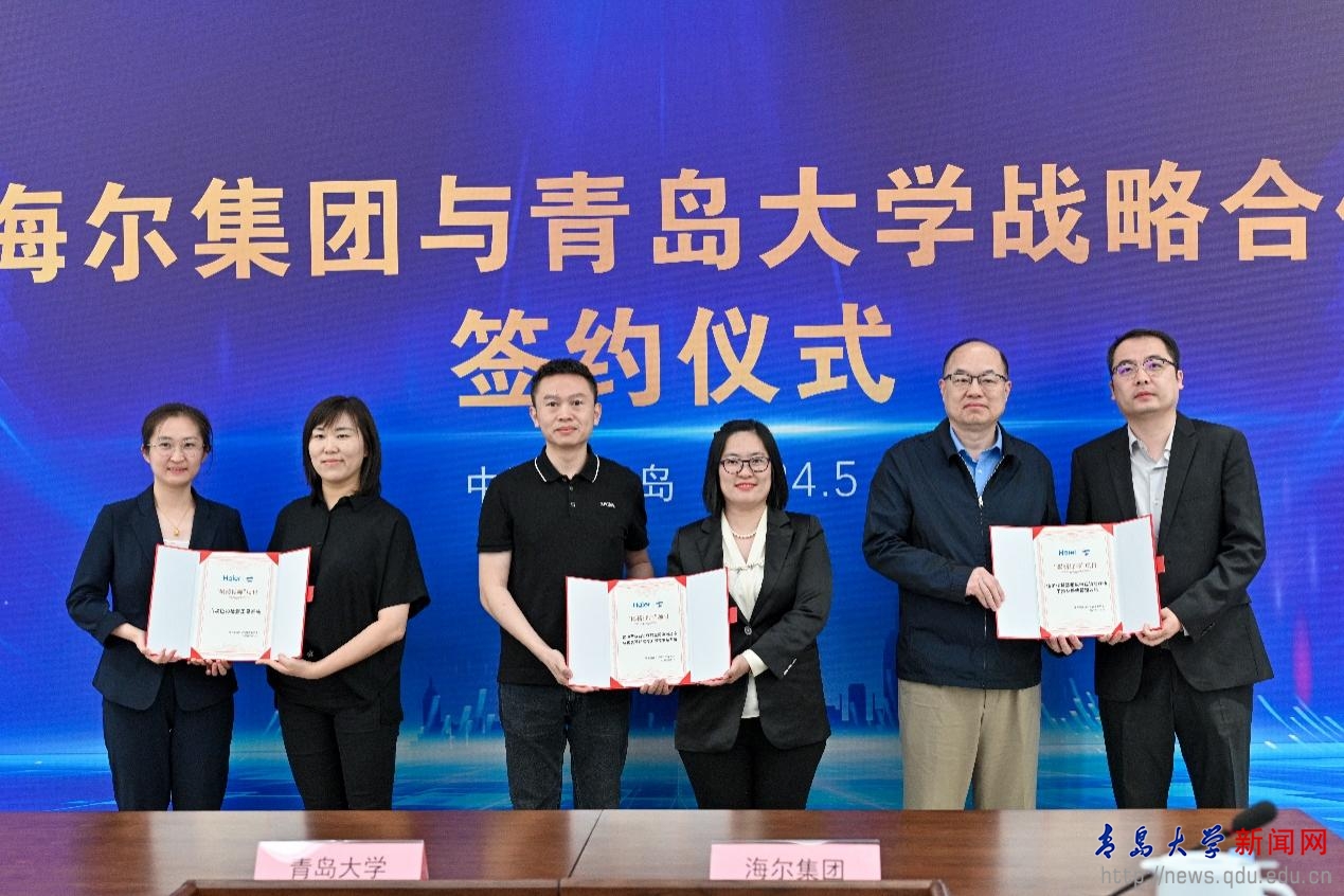 會上,在胡金焱、魏志強、李榮貴、周云杰、梁海山、譚麗霞的見證下,劉恩賢與張玉波簽署雙方戰略合作協議。李榮貴與海爾集團科學與技術委員會執行主任王曄為“海爾-青大聯合創新中心”揭牌,青島大學創新創業學院常務副院長王海榮和海創匯董事長劉長文為“海爾-青大創新創業教育實踐基地”揭牌。同時,海爾聯合創新中心“揭榜掛帥”項目發布,我校6位學者揭榜“高溫熱泵”“腫瘤類器官精準藥篩治療”“細胞房空氣微生物檢測與智慧化”“適老化智慧老年內在功能評估干預及慢病管理”“面向產業鏈協作的全局協同動態優化及智能推薦關鍵技術與系統”“自動色彩檢測工具系統”6個項目。