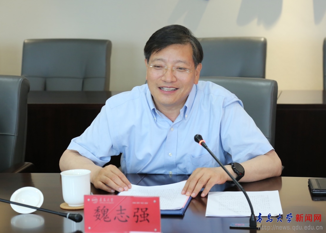魏志強對到訪的各位來賓表示歡迎,對臺南藝術大學辦學所取得的成就以及王新力主席多年來為推動海峽兩岸交流所做出的努力表示贊賞。魏志強介紹了學校的歷史沿革、辦學特色、近年來在學科建設及服務社會等方面取得的成就以及對臺交流合作的情況。魏志強指出,青島大學高度重視與臺灣高校合作交流,雙方將以此次會面為契機,發揮各自特色優勢,在師生交流、科研合作、學科交叉創新及數字藝術、數字傳播、數字文旅等方面加強合作,推進兩校間友好往來,推動青島市與臺南城市間交流合作和產業帶動。