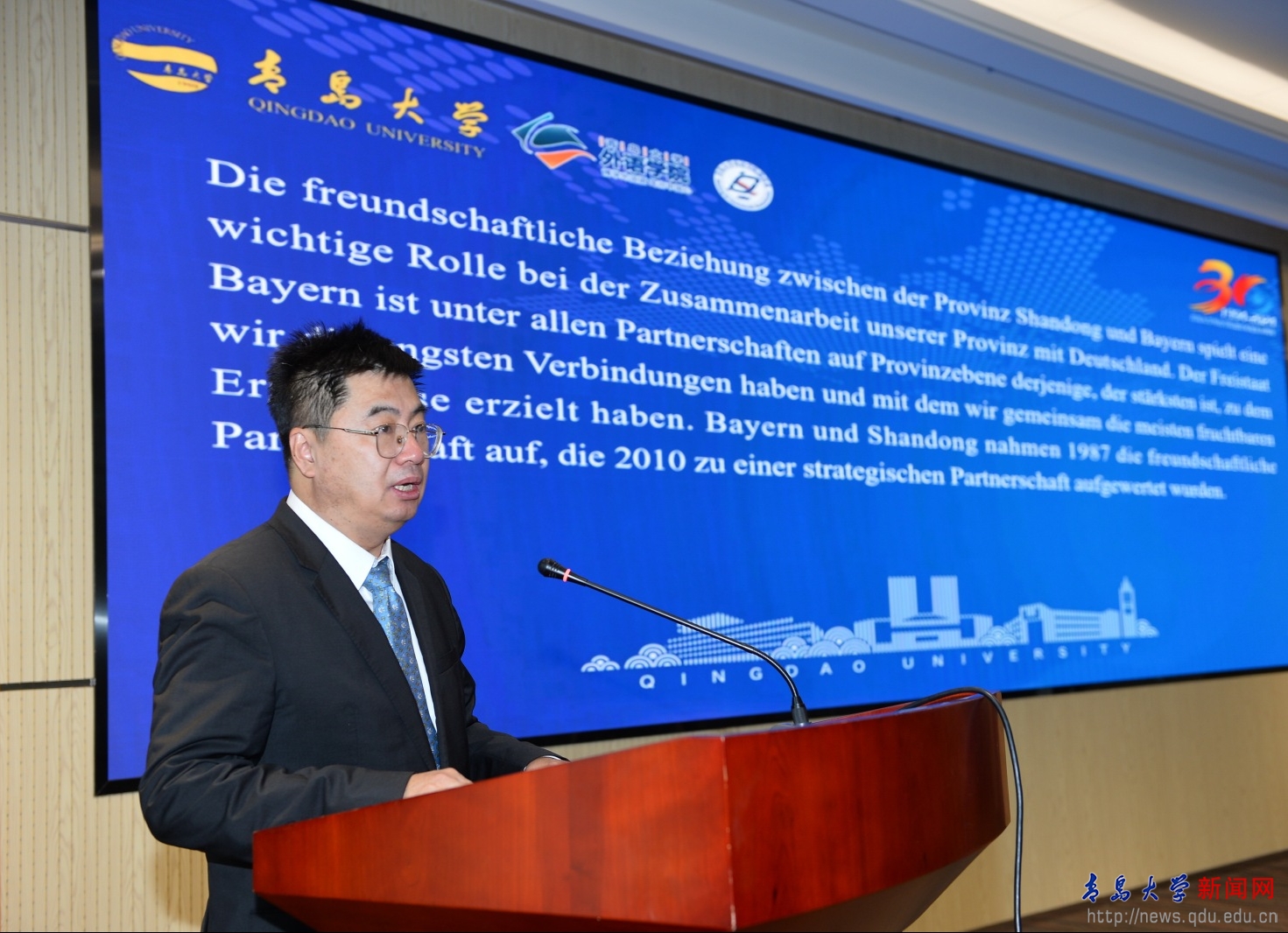 新聞網訊 近日,魯巴教育合作項目30周年成果展暨新文科視野下外語人才培養研討會在青島大學舉行。山東省委外辦、青島市委外辦、青島市委教育工委、德國駐華大使館、德國巴伐利亞州科學藝術部、德國巴伐利亞州對華高教中心等中德兩國各級政府部門領導,北京外國語大學、上海外國語大學、德國拜羅伊特大學、哥廷根大學、慕尼黑應用語言大學和康斯坦茨應用科技大學等中德友校領導或代表,德國學術交流中心駐京辦事處、德國歌德學院北京分院、德國漢斯·賽德爾基金會山東代表處、德國巴伐利亞州華東華北代表處等德國駐華機構代表,我校德語系師生和校友代表100余人出席開幕式。校長魏志強出席開幕式并致辭,開幕式由校黨委常委、副校長何燕主持。