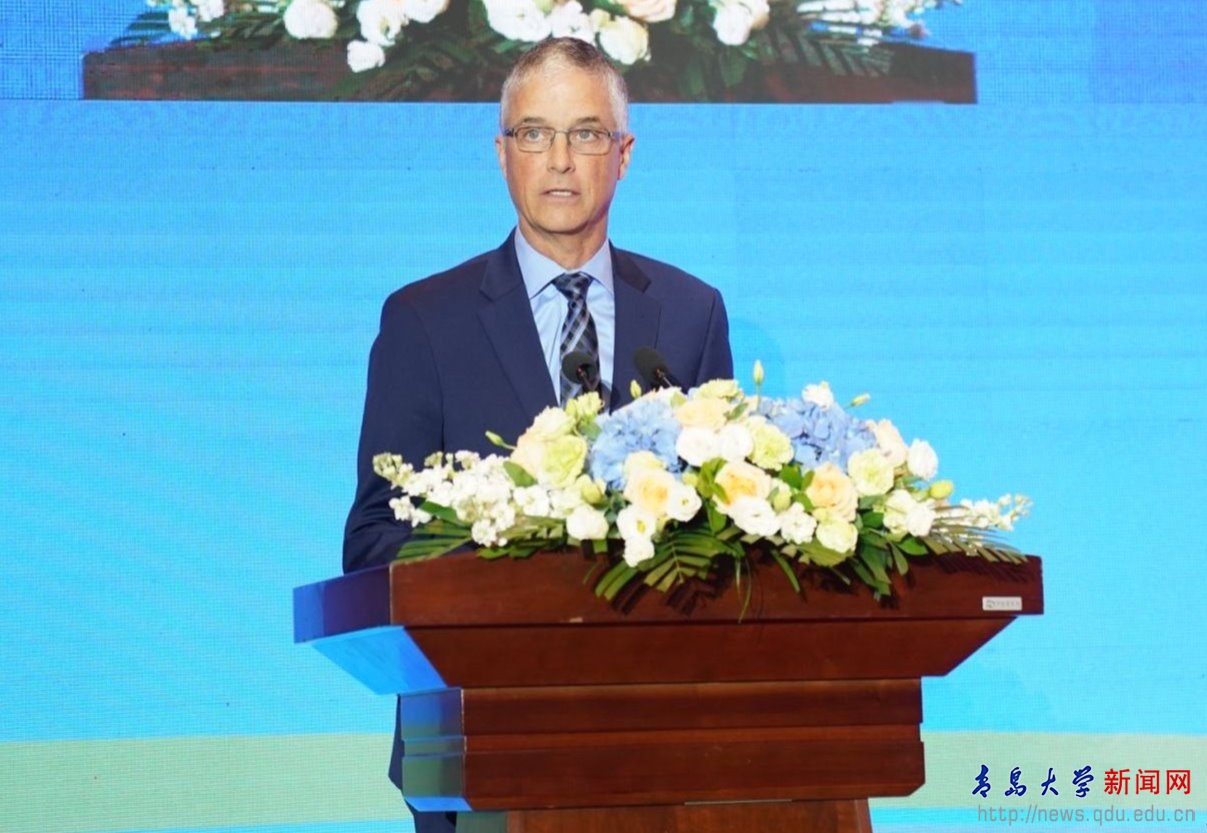 新聞網訊 為深入貫徹2023年11月中美兩國元首在舊金山會晤達成的共識,進一步深化山東與美國教育交流合作,10月24日,中美(山東)高等教育交流與合作論壇在我校成功舉辦。山東省教育國際交流協會副會長孫祖興,山東省教育廳國際交流與合作處處長王夫海,美國德雷克大學校長馬蒂·馬丁(Marty Martin),美國威斯康星大學歐克萊爾校區校長詹姆斯·施密特(James Schmidt ),青島大學校長魏志強出席論壇,美國前駐華大使、世界糧食獎基金會主席特里·布蘭斯塔德(Terry Branstad),美國艾奧瓦州州議員、州醫療協會會長史蒂文·丘吉爾(Steven Chuchill)線上出席,青島大學黨委常委、副校長何燕主持活動。