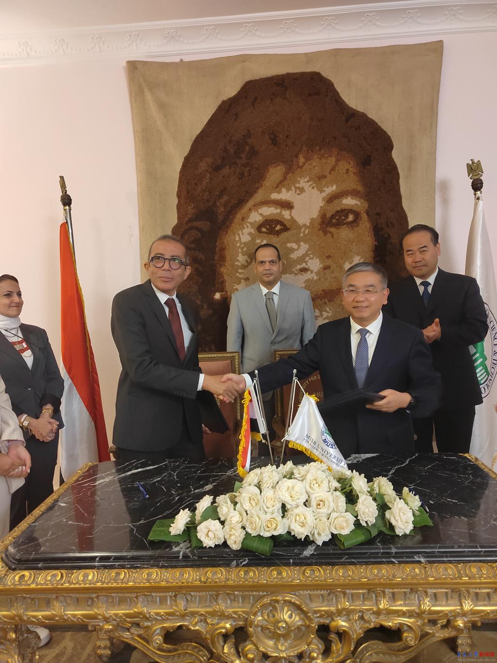 在埃及阿盟科技與海運學院訪問期間,胡金焱與該校校長伊斯梅爾(Ismail Abdel Ghafar)舉行了工作會談,雙方簽署了合作協議。今后,雙方將在臨床醫學、藥學、中文教育等領域開展合作,并將創造條件推動教師和學生的訪問交流,雙方還將相互支持阿方阿拉伯語和國際中文教育學科建設。會后,代表團一行參觀了阿盟科技與海運學院會議中心、航海虛擬實驗中心、藥學實驗中心等教學機構和實驗設施。中國駐埃及亞歷山大代總領事金輝全程參加了上述活動。