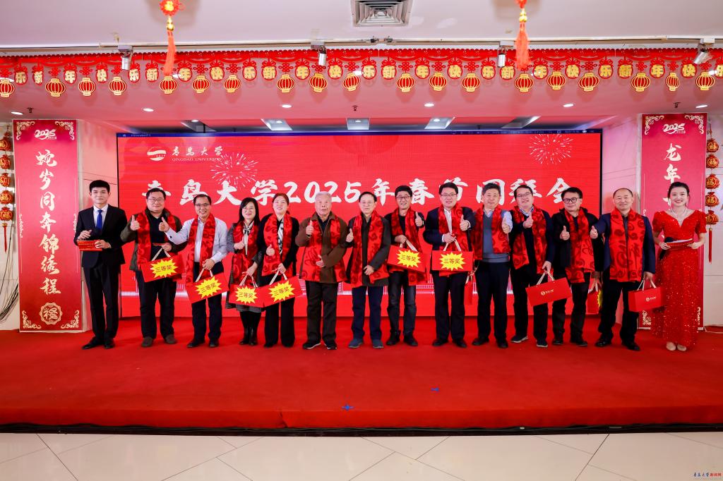 校黨委書記胡金焱致新春賀詞。他指出,2024年學校深入貫徹落實黨的二十大和二十屆二中、三中全會精神,全面落實教育強國和教育強省戰略,聚力轉型發展、創新發展、突破發展,繼往開來,積厚成勢,在高質量發展的道路上奮勇前進。他全面總結了學校過去一年在學科建設、人才培養、科學研究、社會服務、文化傳承創新、國際交流合作等方面取得的成績,通報了學校事業發展取得的標志性突破性成果。胡金焱表示,這一系列辦學成績的取得,離不開每一位青大人的傾情投入、接續奮斗,他代表學校向一年來辛勤工作在教學、科研和服務等各條戰線上的廣大教職員工表示衷心的感謝,向關心學校發展并為學校事業不斷做出新貢獻的老領導、老同志、老專家致以崇高的敬意和新春的祝福。胡金焱強調,2025年是學校全面落實第四次黨代會精神的重要一年,是實現“十四五”規劃目標任務的收官之年,也是全面提升辦學能力、加快推進“雙一流”建設的關鍵一年。學校上下要錨定目標、堅定信心,以敢打必勝的勇氣、久久為功的韌勁,踐行青大人的使命擔當,奮力開創高水平綜合性研究型大學建設新局面。