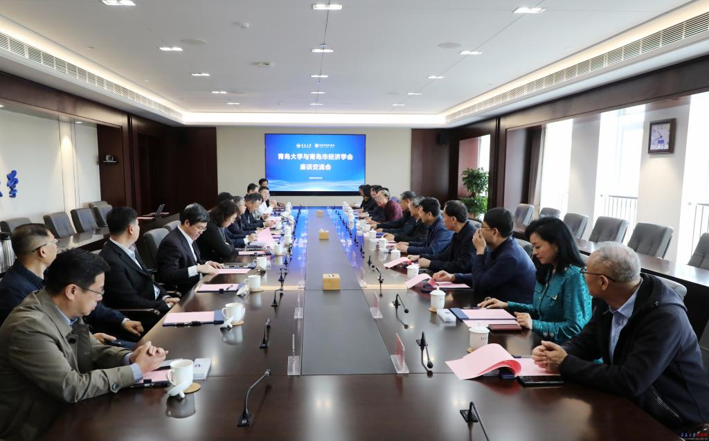 新聞網(wǎng)訊 4月27日上午,青島市經(jīng)濟學(xué)會一行來校座談交流。校黨委書記胡金焱在會議中心致遠廳會見并座談。校黨委常委、副校長劉恩賢陪同參加座談會。