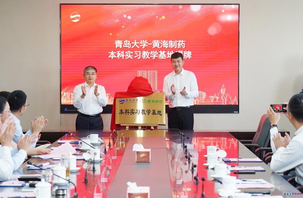 儀式上,胡金焱為劉鳳杰頒發了捐贈證書和捐贈紀念物。胡金焱和王澤楷共同為“青島大學-黃海制藥本科實習教學基地協議”、“青島大學-黃海制藥研究生聯合培養基地”揭牌。