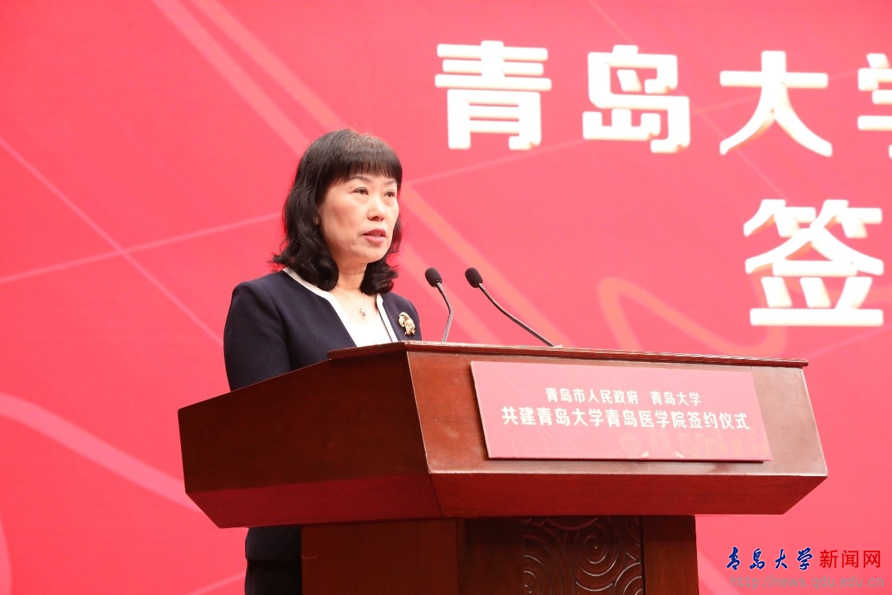 欒新在講話中說,面對醫療衛生體制改革和醫學教育事業發展的新形勢、新機遇、新挑戰,統籌青島醫學醫療資源,做大做強青島醫學教育,實現“組團式”發展,是打造魯東半島醫學醫療中心的必由路徑。青島大學作為半島地區唯一開展高層次醫學教育和高水平醫療服務的綜合大學,青島大學青島醫學院作為我國最早建立的醫學院校之一,擁有一批在國內外具有領先水平的高層次師資和科研隊伍,在科技創新、人才培養、醫療衛生服務等方面取得了一系列突出成果,是魯東半島高水平醫療標桿,為推動青島市經濟社會發展發揮了重要作用。