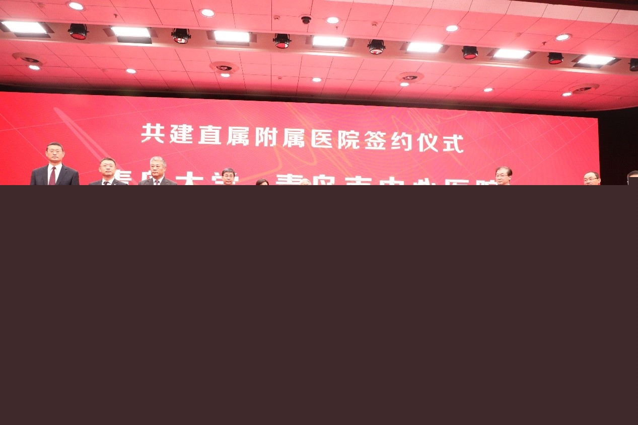 山東省委常委、青島市委書記王清憲,青島市委常委、市委秘書長祝華,山東省衛生健康委二級巡視員、監察專員賈伊,青島市副市長欒新,青島市衛健委黨組書記、主任隋振華,青島大學黨委書記胡金焱、校長夏東偉,副校長于永明、劉彩云,黨委常委、宣傳部長吳世珍、組織部部長徐龍飛,醫學部黨工委書記王新生出席簽約儀式。