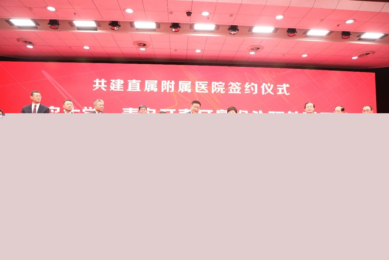 儀式上,在原青島大學醫學院老領導陳在春、郭瑋、唐明、謝俊霞、老教授代表丁世海以及現任青島大學醫學部黨工委書記王新生共同見證下,青島大學醫學部部長姜宏分別與青島市市立醫院院長管軍、青島市中醫醫院(青島市海慈醫院)院長池一凡、青島市中心醫院院長蘭克濤、青島市第三人民醫院院長邢曉博、青島市婦女兒童醫院院長邢泉生、青島市口腔醫院院長王萬春、青島開泰耳鼻喉頭頸外科醫院院長徐欣簽署共建直屬附屬醫院協議,并共同為7家新增直屬附屬醫院揭牌。