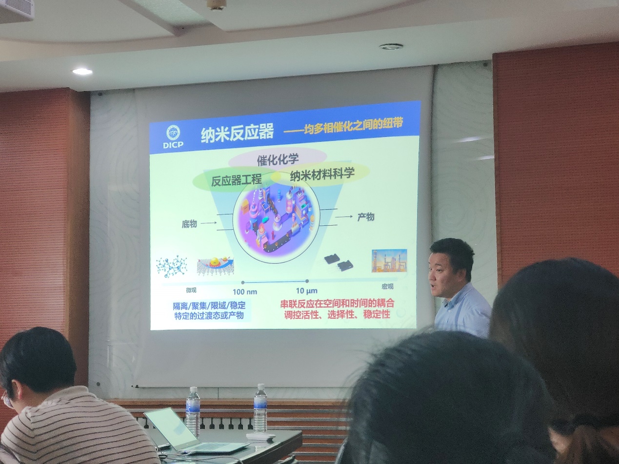 劉健研究員首先介紹了納米反應器的特點,并由自然界中的化學轉化引出具有限域效應的微/納米反應器,利用微/納米反應器可以提高反應的效率和選擇性,并可以在溫和的條件下催化化學反應,所以設計合適的反應器并優化操作條件是化學工程中至關重要的步驟。他還介紹了課題組在微/納米反應器領域的最新研究進展:1.實現不同形貌和結構的納米反應器定制;基于空間限域效應、隔離效應、協同效應等催化機制,將構筑的微/納米反應器應用于催化理論基礎研究;2.認識微/納空間中的催化反應過程,揭示納米反應器中串聯催化反應在空間和時間的耦合問題;3.納米反應器在金屬-硫/硒等涉及催化反應電化學電池中的應用和重大疾病的早期診斷的應用研究。最后,指出了納米反應器在應用中的局限性:材料宏觀和微觀尺度無法實現有效的銜接,盡管創造了多樣的納米制造技術,但微納甚至更小尺度的科學問題亟需深入研究和發展。