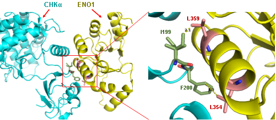 有氧糖酵解(Warburgeffect)是腫瘤代謝的一個顯著特征,促進了腫瘤細胞的快速生長和快速增殖。ENO1作為糖酵解酶關鍵酶,在多種腫瘤中高表達。異常的磷脂代謝已成為腫瘤的一個重要標志。CHKα催化膽堿形成磷酸化膽堿,并經過一系列酶促反應最終生成磷脂酰膽堿。雖然研究表明CHKα在腫瘤發生發展中發揮重要作用,但關于CHKα的調控卻知之不多。