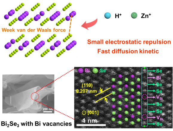 新聞網(wǎng)訊 近日,紡織服裝學(xué)院非織造研究院寧新教授團(tuán)隊成員何宏偉、任曉川在柔性水系鋅離子電池(ZIB)領(lǐng)域取得重大研究進(jìn)展,相關(guān)成果以“Cation Defect-Engineered Boost Fast Kinetics of Two-Dimensional Topological Bi2Se3 Cathode for High-Performance Aqueous Zn-Ion Batteries”為題,在國際頂級期刊Advanced Materials(Adv. Mater., 2023, 2306269)發(fā)表,期刊影響因子29.4。青島大學(xué)為第一完成單位,何宏偉、任曉川與澳大利亞伍倫貢大學(xué)Nana Wang為共同通訊作者,該工作得到國家自然科學(xué)基金、國家重點研發(fā)計劃、山東省自然科學(xué)基金,青島大學(xué)科研啟動經(jīng)費等的資助支持。