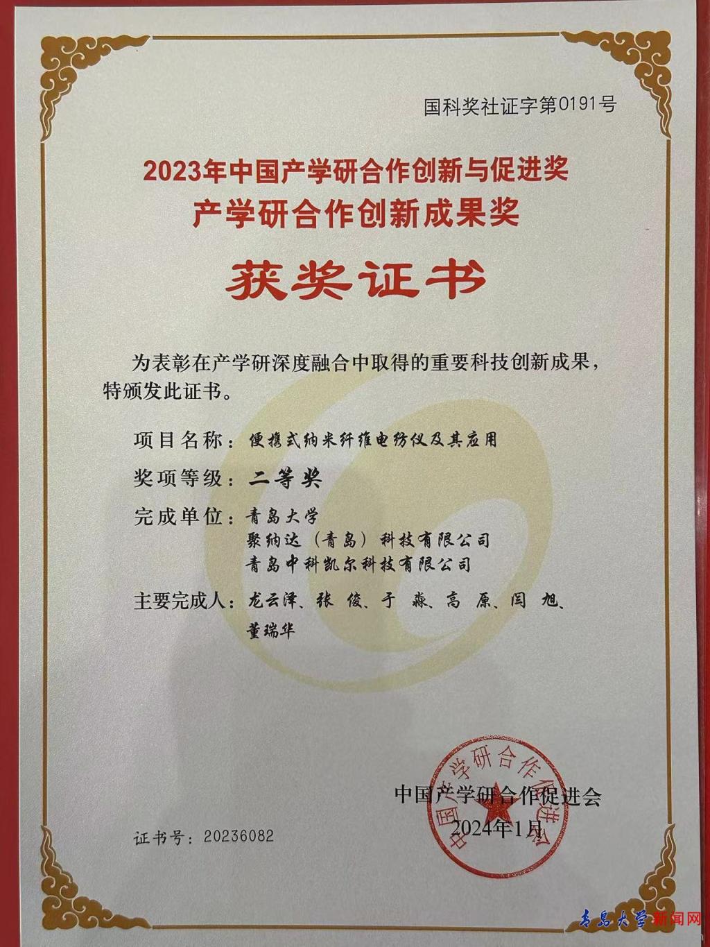 新聞網訊 3月17日,第十五屆中國產學研合作創新大會在北京舉辦,大會以“產學研聚焦:新動能 新模式新產業”為主題,探討如何通過產學研協同創新將科教興國、人才強國、創新驅動發展戰略落到實處,打好關鍵核心技術攻堅戰,發展新質生產力,支撐引領現代化產業體系建設,加快實現高水平科技自立自強,推動國家高質量發展。會議隆重頒發了2023年中國產學研合作突出貢獻獎、創新獎、促進獎、創新成果獎、工匠精神獎,我校物理科學學院龍云澤、張俊團隊的成果《便攜式納米纖維電紡儀及其應用》榮獲2023年中國產學研合作創新成果獎二等獎。