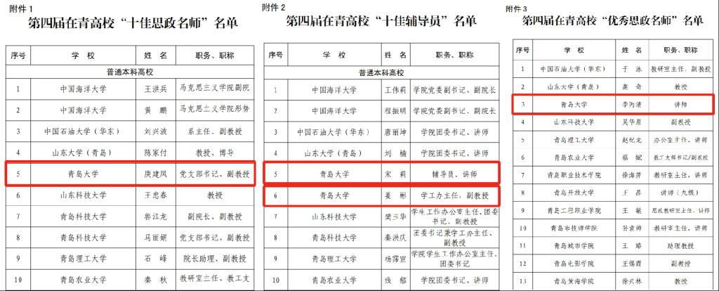 本次評(píng)選旨在深入學(xué)習(xí)貫徹落實(shí)習(xí)近平總書(shū)記關(guān)于學(xué)校思想政治教育和思政課建設(shè)的一系列指示精神,充分發(fā)揮典型示范和引領(lǐng)作用,激發(fā)高校思政教師和輔導(dǎo)員的工作積極性,推動(dòng)高校思想政治工作創(chuàng)新發(fā)展。據(jù)悉,本次青島市普通本科高校最終評(píng)選出10位“十佳思政名師”、10位“十佳輔導(dǎo)員”、17位“優(yōu)秀思政名師”、15位“優(yōu)秀輔導(dǎo)員”。