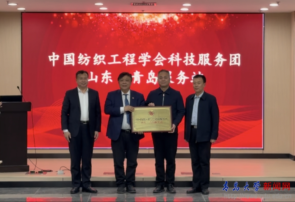 啟動會上,伏廣偉、吳杰和王崇江共同宣布中國紡織工程學會科技服務(wù)團山東·青島服務(wù)站正式落戶我校,伏廣偉親自為學校授牌,該服務(wù)站的設(shè)立,將進一步促進雙方在科技服務(wù)等領(lǐng)域的深度合作。