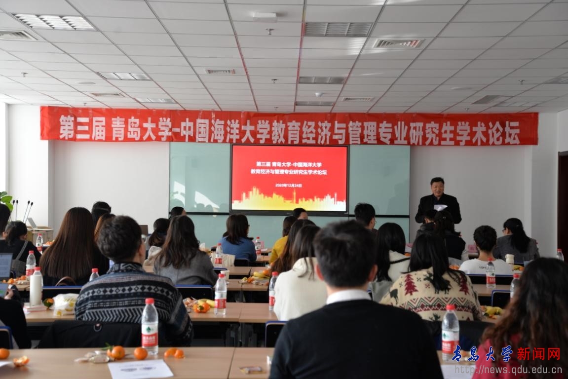 最后,經兩校專家評委討論,本次論壇評選出一等獎兩名、二等獎四名、三等獎五名,并頒發獲獎證書和獎品。中國海洋大學高教研究與評估中心副主任馬勇充分肯定了兩校研究生們的學術成果,表示本次論壇不僅是兩校學術成果的交流與碰撞,更是同學們相互學習的好機會,也是青島大學與中國海洋大學教育經濟與管理專業碩士生培養的重要環節。