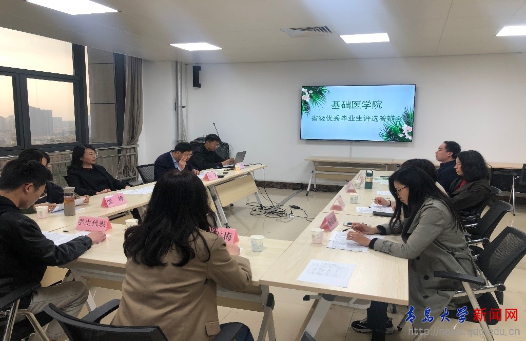 新聞網(wǎng)訊 近日,基礎(chǔ)醫(yī)學院在醫(yī)學教育綜合樓B810會議室舉行2021年度省級優(yōu)秀畢業(yè)生答辯會,獲得校級優(yōu)秀畢業(yè)生的19位同學中13人報名參加,1人參加青島大學服兵役學生省級優(yōu)秀畢業(yè)生評選。為本次答辯會擔任評委的是基礎(chǔ)醫(yī)學院黨委副書記劉學、副院長陳文芳、教授王云、張崢、王俊,副教授李尚勇、楊麗娜,輔導員譚雪梅及兩位學生代表。