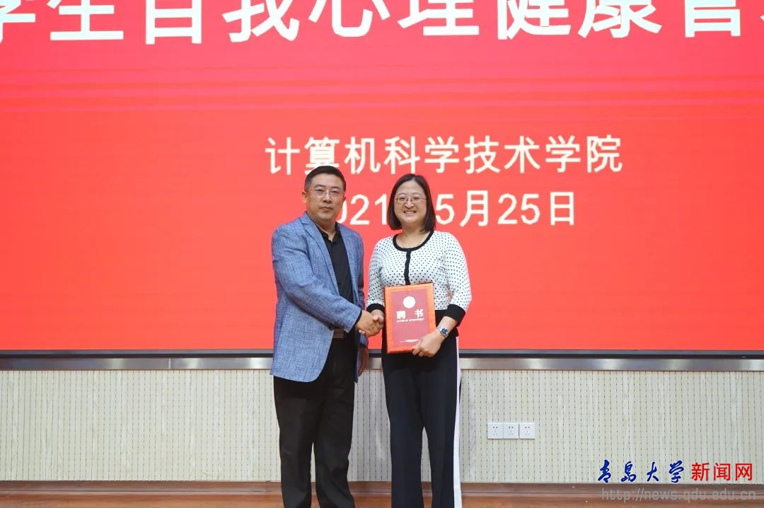 新聞網(wǎng)訊 全國大學生心理健康日,計算機科學技術學院特邀青島市市立醫(yī)院臨床心理科副主任醫(yī)師、心身疾病科主任、國家二級心理咨詢師、心理治療師、婚姻家庭治療師——王克主任針對大學生的心理服務需求,開展主題為“心理測評意義與學生自我心理健康管理科普”講座。院黨委副書記周鵬,物聯(lián)網(wǎng)工程系紀俊老師創(chuàng)業(yè)團隊的聯(lián)合創(chuàng)始人于濱,2020級輔導員夏爽,青島大學心理協(xié)會主席劉在創(chuàng),青島大學心理協(xié)會各部門負責人,院心理委員、部分學生代表參加本次講座。
