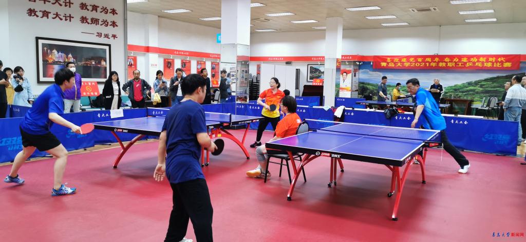 新聞網訊 5月15日,我校“喜迎建黨百周年 奮力建功新時代”2021年度教職工乒乓球單打比賽在浮山校區教工之家舉行,來自17個分工會的50余名運動員參加了比賽。