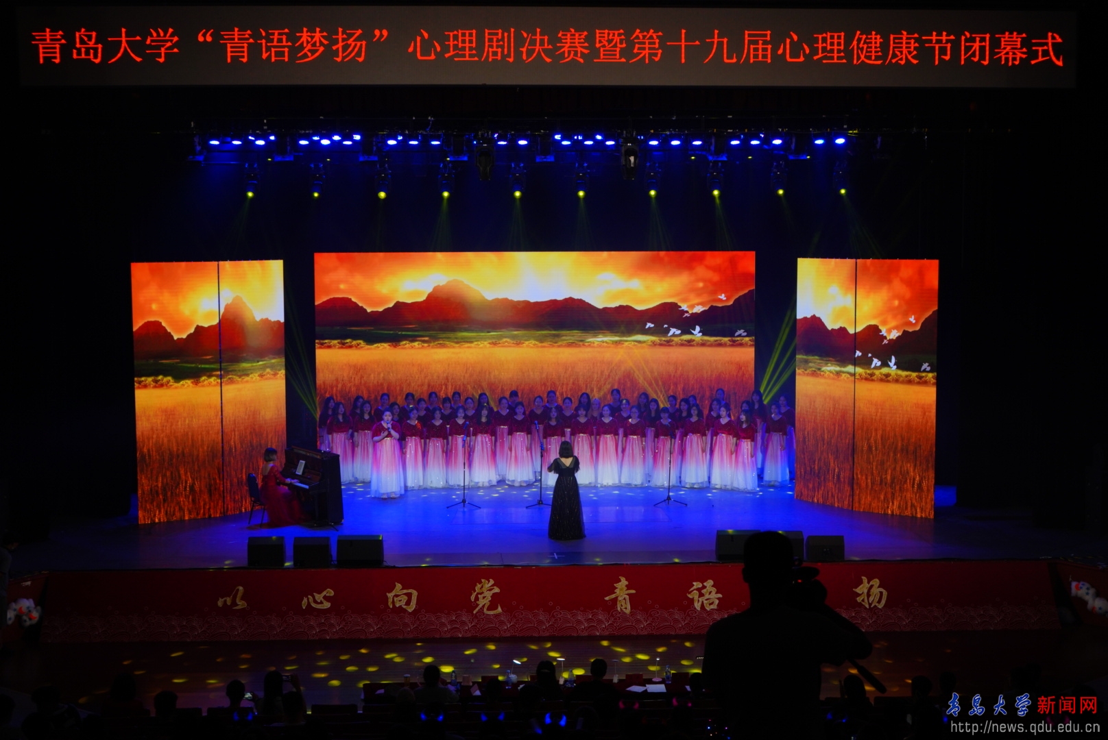 新聞網訊 6月11日,青島大學第六屆“青語夢揚”心理劇決賽暨第十九屆心理健康節閉幕晚會在青島劇院成功舉行。校黨委常委、副校長劉彩云、相關職能部門領導、輔導員、心理教師和學生代表共計400余人參加了晚會。