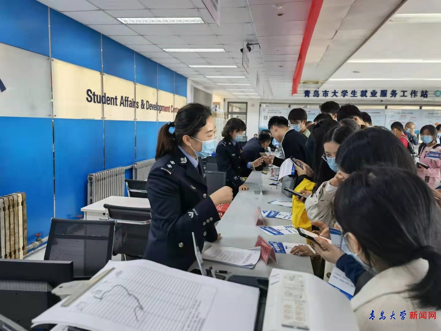 活動中對師生們關心的青島市人才落戶新政、在校生落戶辦理流程、各類戶政手續的條件、時限、轉移、便民利民措施、收費標準等服務舉措,市戶政局民警們進行實地宣傳和現場答疑,同時發放相關宣傳資料。