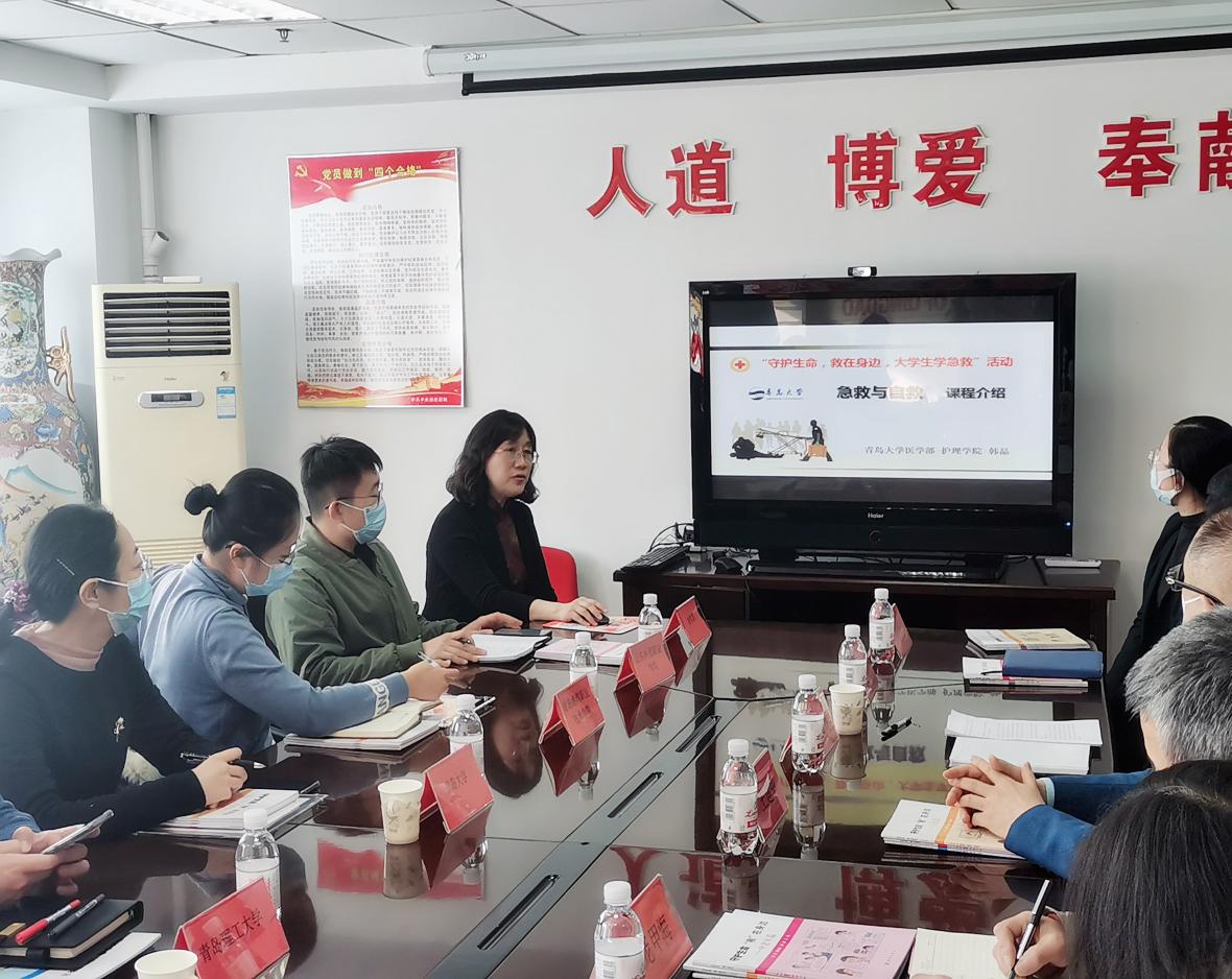 青島大學高度重視學生的急救知識培訓,護理學院成人護理學教研室主任、《急救與自救》課程負責人韓晶向與會代表介紹了青島大學“守護生命,‘救’在身邊”急救知識比賽活動和《急救與自救》課程內(nèi)容。韓晶希望能夠?qū)ⅰ都本扰c自救》課程推廣到駐青高校,并表示愿意為各高校提供業(yè)務指導。