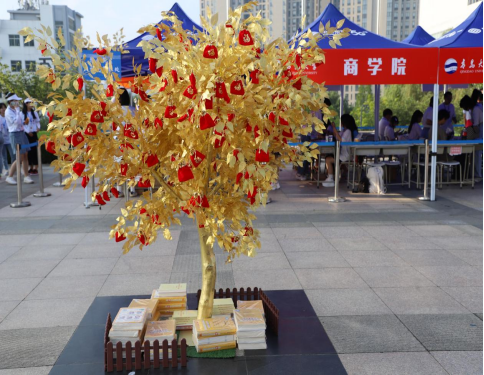 各學院負責迎新工作的學工隊伍也亮點紛呈,盡展學工風采。商學院為新生設置了一顆金黃色的“心愿樹”,樹上掛有錦囊,是學院為新生準備的獨具亮點的祝福,里面有眾多禮品,包括整套四級真題、《習近平新時代中國特色社會主義思想學習綱要》、《紅星照耀中國》、《魯迅全集》等書籍。物理科學學院設立黨員先鋒服務崗,開展迎新志愿服務活動。“放心把孩子交給我們,我們志愿者會陪同他們完成報到的。”滿臉通紅、汗流浹背的學生黨員說道,這是黨員先鋒服務崗的同志們一遍又一遍地對前來送新生入學的家長們的叮囑。環境科學與工程學院將知識應用于學院迎新工作之中,研發去甲醛試劑以及其他環保新材料,幫助新生凈化宿舍空氣,去除異味。師范學院將厚植師范文化氛圍作為新生教育“入學第一課”,通過設計專屬宿舍門貼與宿舍公約,張貼特色作品,贈送專屬字帖等方式向學院新生傳遞“立師志,修師德,博師學,練師功”的學院價值觀,展現學院教師教育特色。