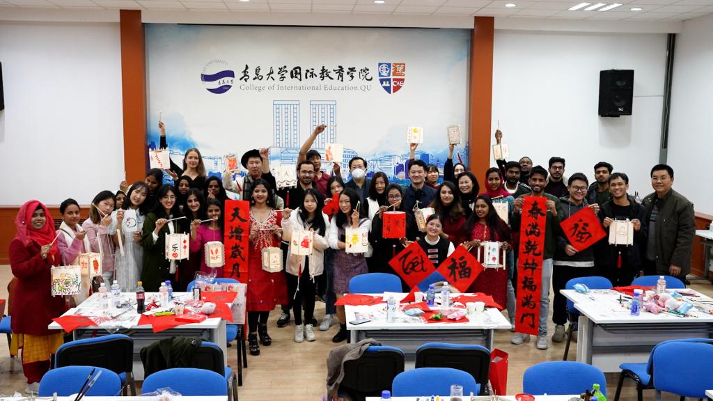 新聞網訊 為豐富留校國際學生的在校生活,感受中國傳統文化,讓留校國際學生度過一個愉快祥和的春節,近日,國際教育學院組織了以“濃濃中國情,幸福中國年”為主題的青島大學國際學生迎新春民俗學習活動。來自俄羅斯、泰國、印度、孟加拉、蒙古等十余國的30名留學生在老師的帶領下體驗了“中國年”:講年俗、寫福字、做兔燈,豐富多彩的活動讓留學生感受到了濃濃的中國“年味道”。