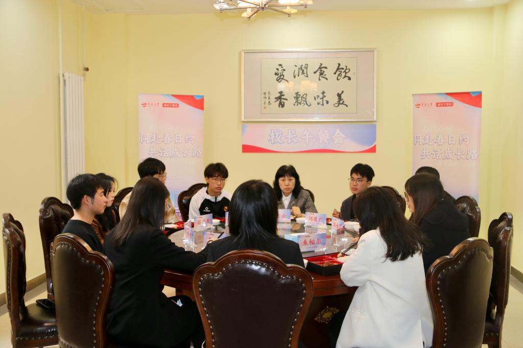 本次午餐會主題為“同赴春日約 共話成長路”,劉彩云與同學(xué)們邊吃邊聊、親切交流,認(rèn)真傾聽他們對大學(xué)生活的體驗和感受,詢問他們對大學(xué)生活的規(guī)劃和期待,征求他們對學(xué)校的意見和建議。同學(xué)們分別圍繞專業(yè)學(xué)習(xí)、志愿服務(wù)、競賽氛圍、師資力量以及體育運動等方面分享了自己的大學(xué)生活體驗,表達(dá)了大學(xué)生活的期待與憧憬,同時就當(dāng)前存在的疑惑向校長進(jìn)行了咨詢。