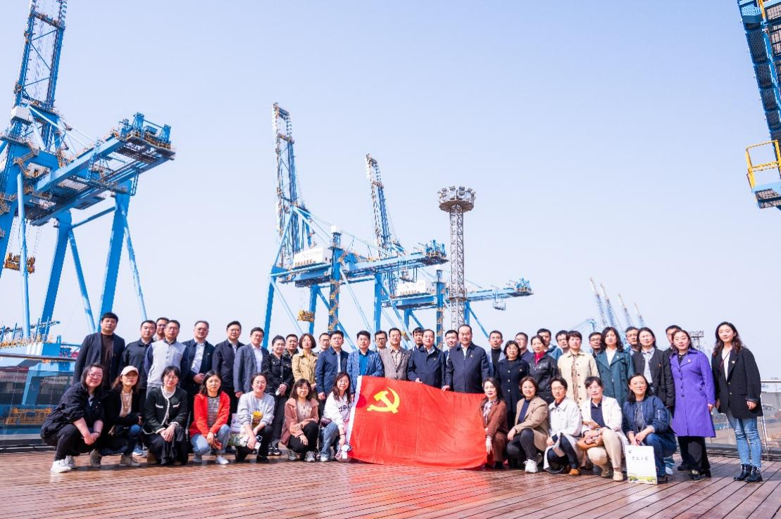 新聞網訊 為進一步學習貫徹黨的二十大精神,深入開展學習貫徹習近平新時代中國特色社會主義思想主題教育,近日,校部機關黨委書記邱建國帶領50余名黨員赴山東港口青島港全自動化碼頭交流中心和許振超大師工作室,開展黨建學習調研主題黨日活動。