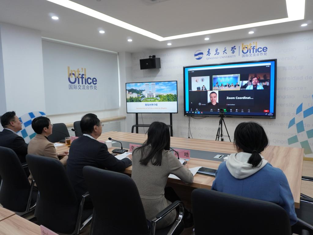 李軍介紹了青島大學和西班牙系的基本情況。米格爾·卡斯蒂略和胡安·比利亞韋德分別介紹了康普頓斯大學和國際項目相關情況。