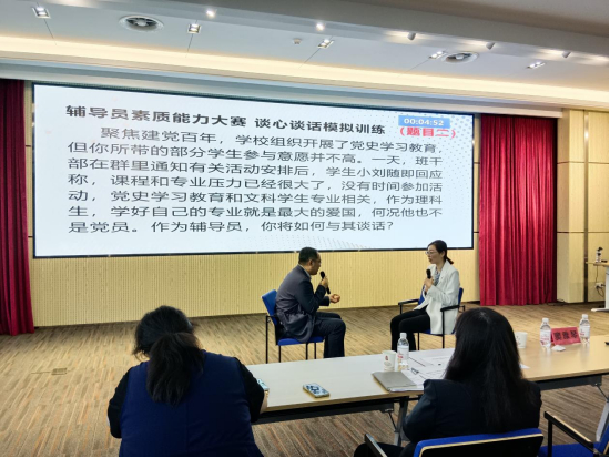 竇雅琴立足“以賽促學,能力提升,積累成長,助人達己”主旨,結(jié)合自身參賽經(jīng)歷,深入淺出地講述了基礎(chǔ)知識測試、理論宣講、談心談話以及案例分析四個不同的考察要點以及備賽啟示,強調(diào)要將比賽內(nèi)容與日常工作緊密結(jié)合,注重理論學習和實踐積累。她從輔導員九大工作職責入手,與在場的輔導員老師們分享了職業(yè)能力提升方面的經(jīng)驗與心得。會上,我校輔導員寇磊和馬瑋現(xiàn)場進行了理論宣講、案例分析、談心談話等形式的實操演練,竇雅琴給予了充分肯定和精彩點評。