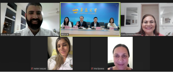 會(huì)上,司現(xiàn)鵬和安德烈斯·貝納維德斯分別介紹了青島大學(xué)和卡塔赫納大學(xué)的基本情況。雙方經(jīng)過交流與探討,就開展孔子學(xué)院建設(shè)、師生交流、線上課程、拉丁美洲區(qū)域研究等合作達(dá)成一致。