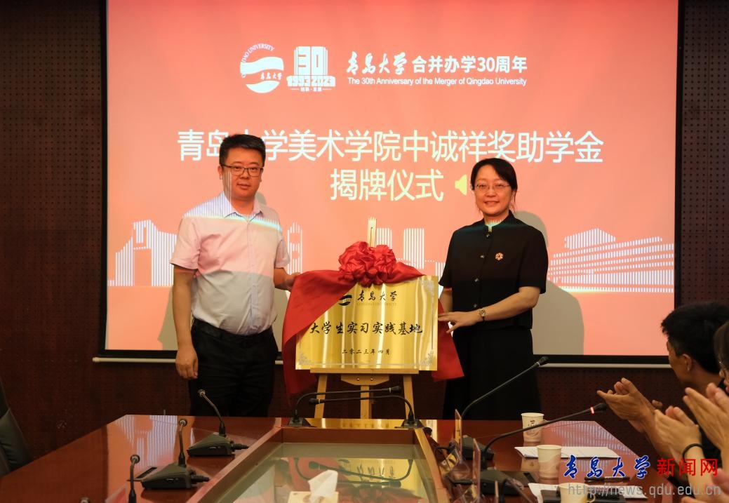 儀式上,劉彥辰、王春共同為“實習實踐基地”揭牌。獲獎學生代表徐宣表達了對中誠祥建設集團的感謝和對學校學院栽培的感激之情,她必將堅守初心,懷著感激之情,將這份光榮和責任傳承下去。