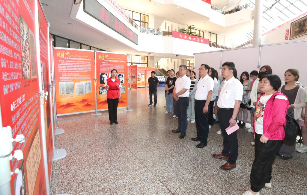 肖江南代表學校致辭。他表示,當前學習貫徹習近平新時代中國特色社會主義思想主題教育正如火如荼開展。本次活動是對習近平總書記關于“紅色基因就是要傳承”“要推動黨史學習教育常態化長效化”等重要指示精神的貫徹落實,是高校立德樹人的使命所在。他強調,此次展覽是一堂意義深遠的大思政課、黨課。各學院黨委要結合正在進行的學習貫徹習近平新時代中國特色社會主義思想主題教育,積極組織師生、黨員參觀展覽,接受教育,錘煉黨性。