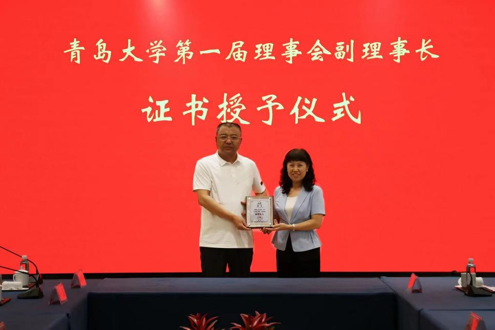 當(dāng)日,舉行了青島大學(xué)第一屆理事會(huì)副理事長證書授予儀式。劉彩云為山東省人大代表、齊潤集團(tuán)黨委書記、董事長李明剛頒發(fā)了青島大學(xué)第一屆理事會(huì)副理事長聘書。