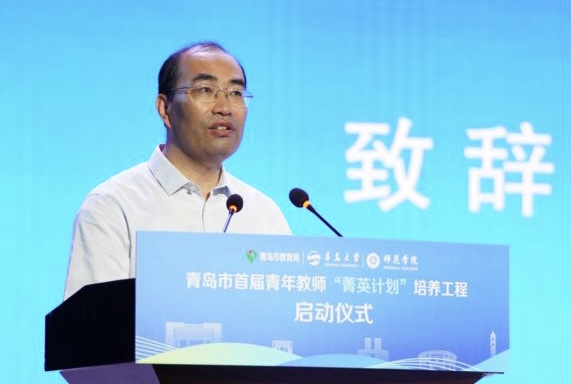 孔偉金對啟動儀式的舉辦表示熱烈的祝賀,對嘉賓的到來表示誠摯歡迎。孔偉金介紹了青島大學的辦學歷史、學科建設、科學研究、人才培養、師資隊伍建設及服務區域經濟社會發展等情況。他表示,青島大學高度重視師范教育發展,一定舉全校之力辦好本輪培養工程,“立足青島、融入青島、服務青島”,為促進青島基礎教育青年教師專業成長提供助力和動力,圓滿完成青島市教育局對“菁英教師”培養工程要求的各項目標要求。