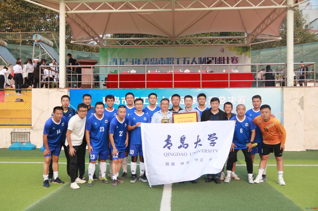 在全市事業單位14支隊伍參加的五人制足球比賽中,由我校教職工足球協會選派的五人制足球隊與教育局、青島市園林局、青島市城市管理局同小組,經過隊員們的努力拼搏,小組順利出線。在淘汰賽中,我校先后淘汰了醫務總工會、青島市公安局等隊挺進決賽。決賽中,面對衛冕冠軍青島市教育局代表隊,我校以1比2惜敗于對手,連續兩屆比賽獲得亞軍。整個比賽中,我校教職工充分展示出了青大人永不放棄、敢打敢拼、團結協作、積極向上的精神面貌,為學校爭得了榮譽。