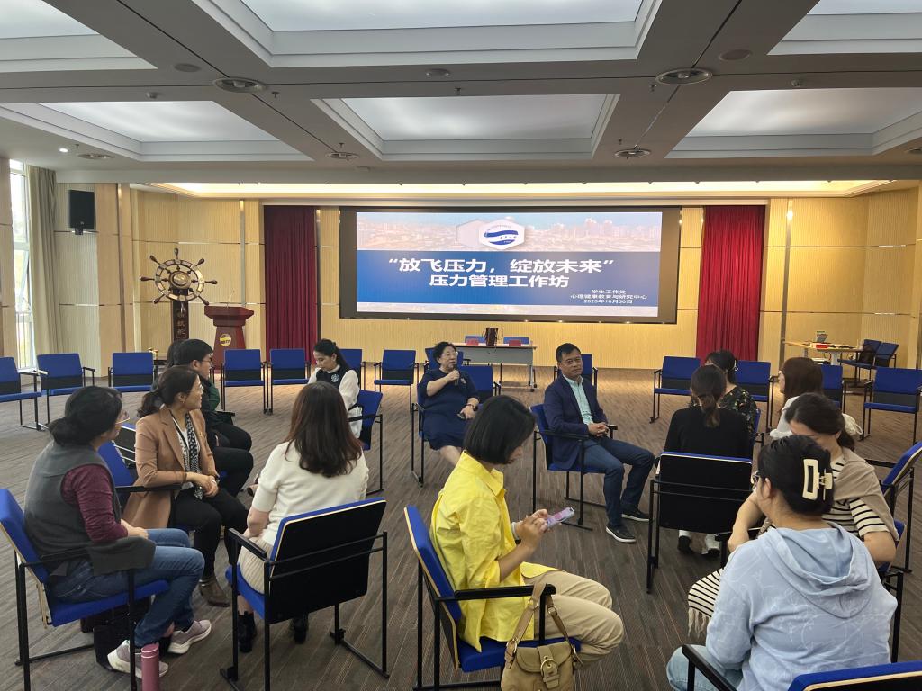 新聞網訊 為幫助學工人員增強自我覺察,有效應對壓力,提升專業技能,增強工作獲得感和幸福感,10月30日,學生工作處心理健康教育與研究中心(以下簡稱心理中心)邀請山東大學吳少怡教授為我校學工人員開展了“放飛壓力,綻放未來”壓力管理工作坊。我校專兼職心理咨詢師和部分輔導員老師在浮山校區會議中心參加此次活動。